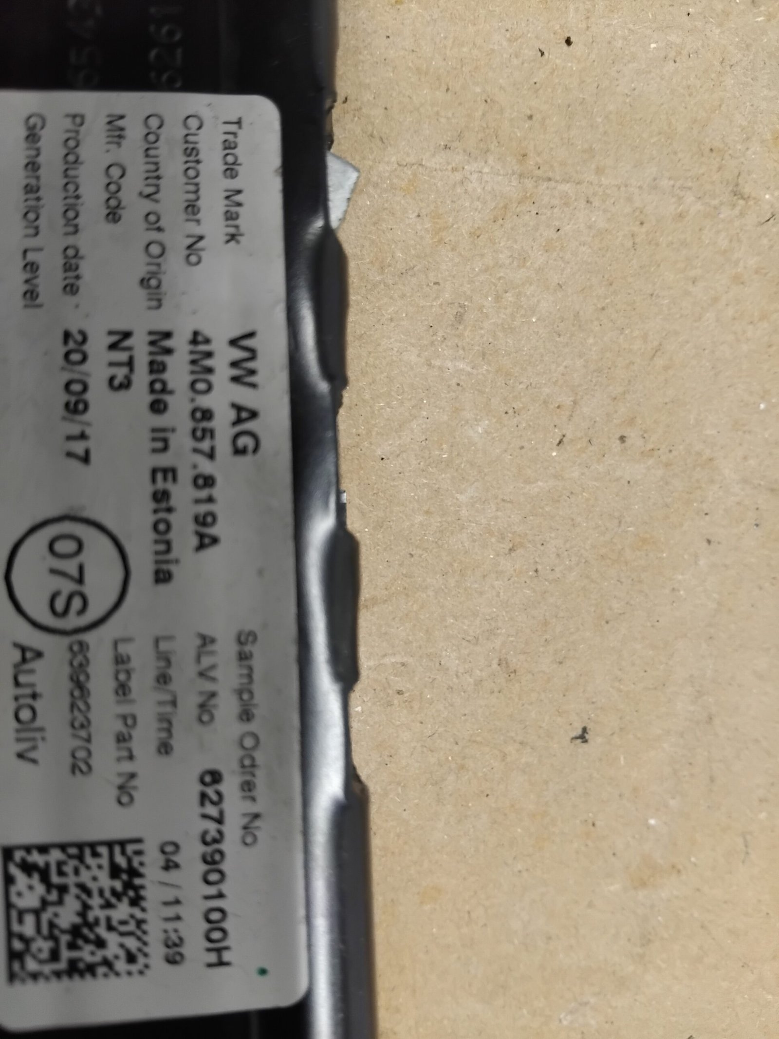 VW Polo VI 2020m Saugos diržo reguliavimo bėgelis 4M0857819A